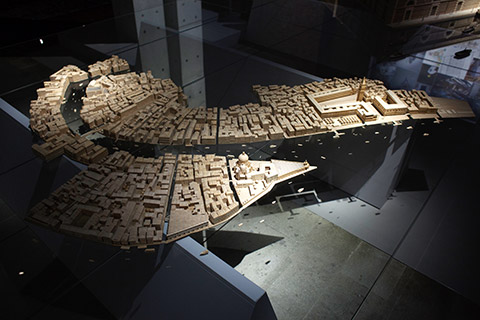 Beim riesigen Modell von Liu Jiakun glaubt man zuerst an ein fiktives Modell, es handelt sich allerdings um ein gewaltiges, realisiertes Projekt in Chengdu, um das eine breite Rampe öffentliche Räume und Aussichten schafft. Foto © Francesco Galli oder Andrea Avezzù, La Biennale di Venezia