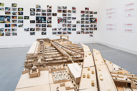 In den hinteren Räumen des Zentralen Pavillons wird die kuratorische Handschrift Aravenas immer unklarer. Hinter diesem Beitrag von Designworkshop (Südafrika) folgen noch Präsentationen von Rogers Stirk Harbour und Renzo Piano.