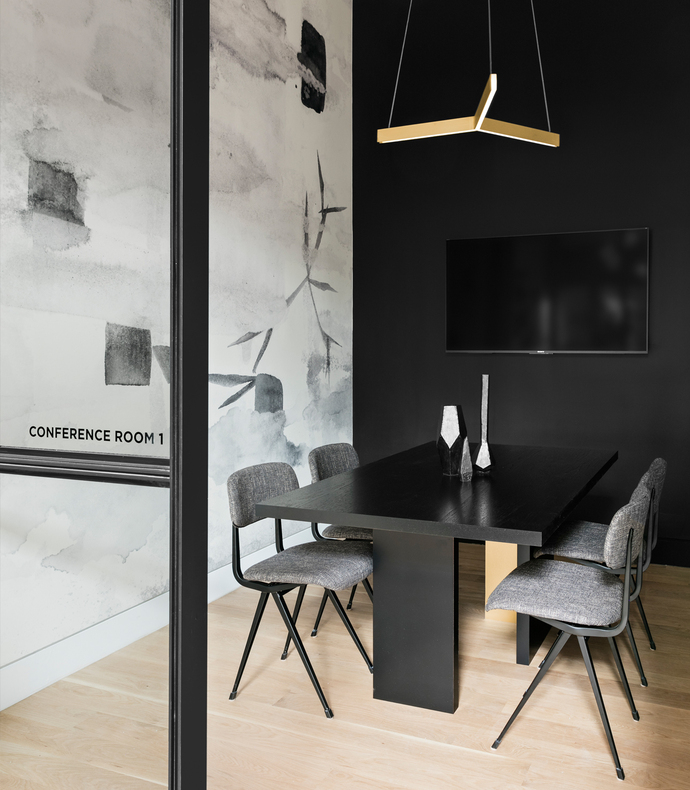 Eine Schwarz-Weiße Farbgestaltung mit grafischen Details zieht sich durch die Räume, Akzente setzen Marmorflächen und Leuchten mit metallischen Oberflächen. Für das edel wirkende Interior wurden Objekte und Möbel von Pierre Jeanneret, Friso Kramer, Jaime Hayon und Resident Studio sowie Kreationen von lokalen Designern wie J. M. Szymanski und Eskayel ausgewählt. Dazu entwickelte The New Design Object eigene Entwürfe für die Arbeits- und Konferenzräume.