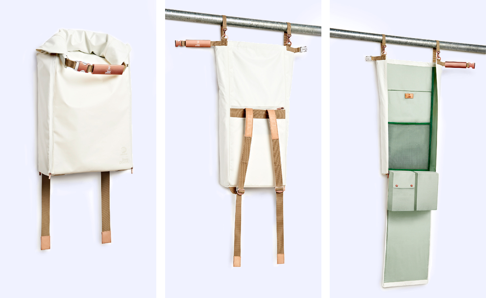 Die Krönung der Kollektion aber ist das Gepäck: eine geräumige Reisetasche, eine Messenger-Bag und ein Rucksack, die sich durch ein organisiertes Innenleben als textiles Möbelstück entpuppen und in denen man so einiges verstauen kann. „Everything-you-need-for-a-week-away-folded-nice-and-flat-in-a-carry-on-bag“, heißt es in der Beschreibung. So kommt eben doch der Möbeldesigner zum Vorschein.