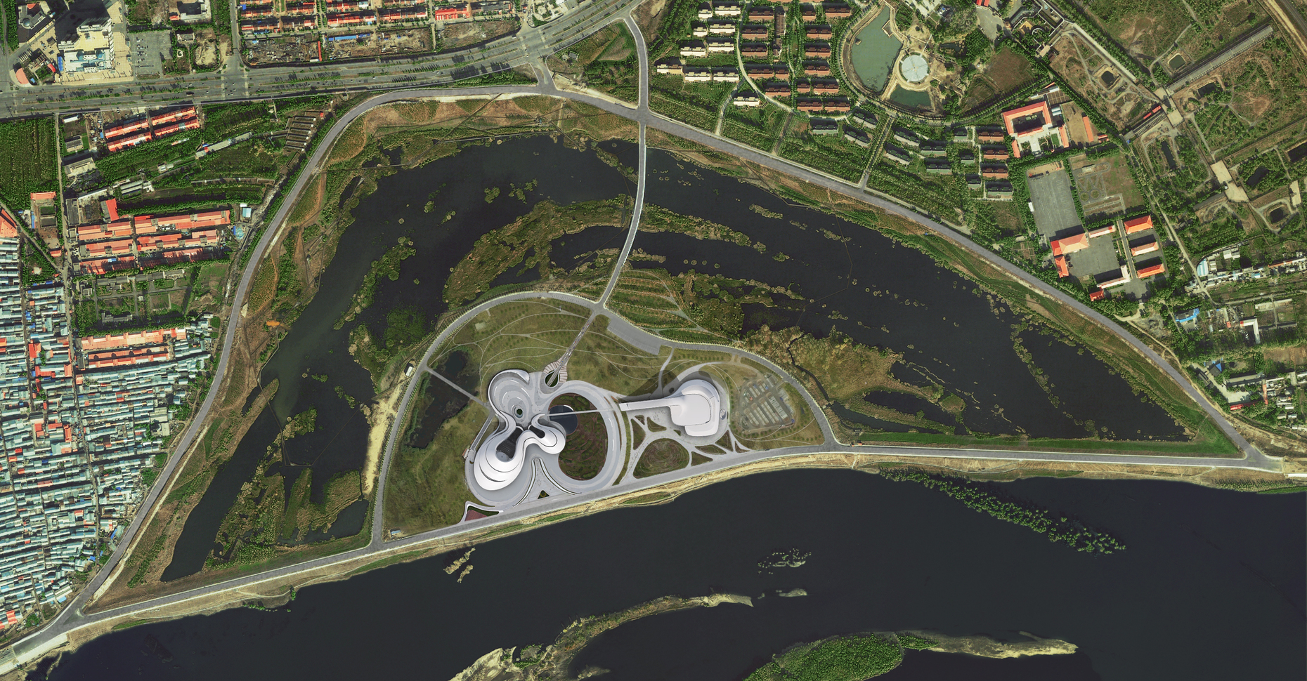 Denn in der Stadtentwicklung von Harbin ist das nächste große Ziel die Entwicklung der sumpfigen Inseln am Fluss. Harbin hat längst die Zehn-Millionen-Einwohner-Marke erreicht, und so sollen die durch das breite Flussbett getrennten Stadtteile nun auf künstlichen Inseln zusammenwachsen. Die Oper nimmt mit ihrem Park gleich eine ganze, eigene „Kulturinsel“ ein, deshalb sollte sie ganz explizit als eine Art von „Stadtkrone“ besonders gestaltet werden.
