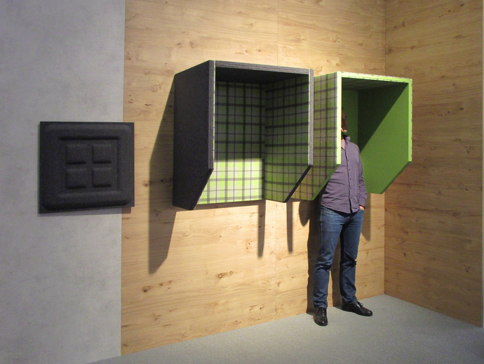 Arbeiten im Großraumbüro liegt zwar im Trend, ist aber nicht immer ein Vergnügen: Der Sitznachbar spricht lautstark in seinen Telefonhörer, die Kollegen am Tisch gegenüber unterhalten sich angeregt – überall Stimmengewirr, Telefonklingeln, Tastaturgeklapper. Wer da nicht auf Kopfhörer zurückgreifen will oder darf, für den wird das konzentrierte Arbeiten schnell zur Herausforderung. Damit im großen und oft kahlen Open Office keine Geräuschkulisse herrscht wie auf dem Wochenmarkt, sollen Schallschutzelemente Abhilfe schaffen. Und die kommen in zahlreichen Formen und Farben daher: Als verspielte Wandelemente, dekorative Aufsteller und flexible Akustikpaneele direkt an den Schreibtisch montiert. Zudem können vertrauliche Telefonate jetzt in kleinen Verschlägen geführt werden, die wie Telefonhäuschen aus vergangenen Zeiten anmuten. Wem das noch nicht reicht, der kann sich in lauschige Schallschutzkabinen zurückziehen - meist Würfel aus Glas und Absorberelementen. Dann sitzt man zwar im Glashaus, hat dafür aber seine Ruhe.