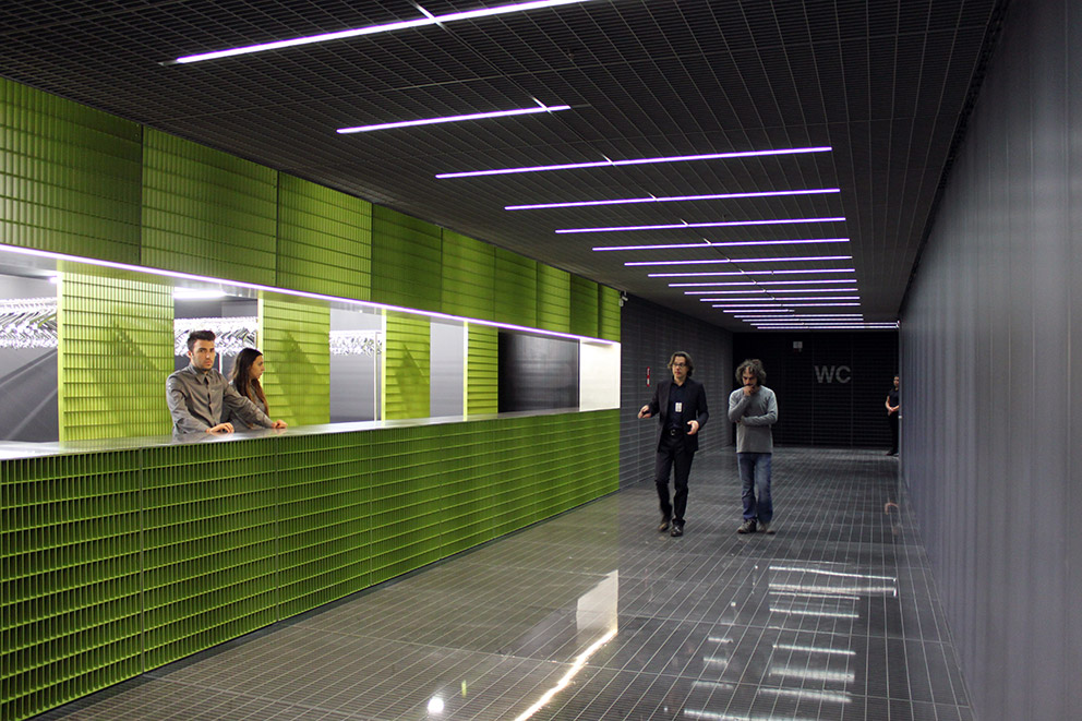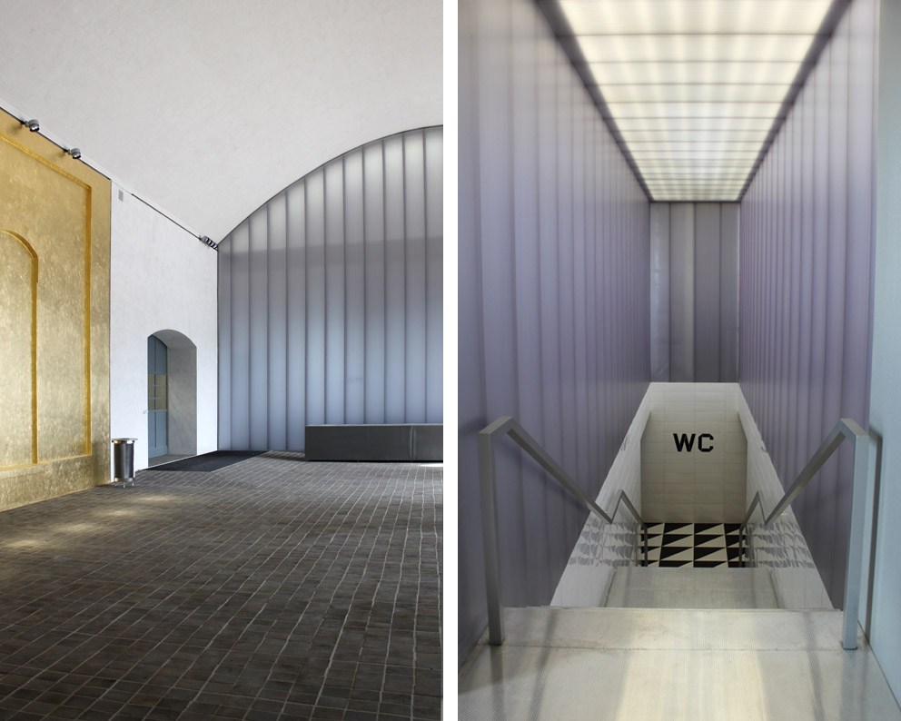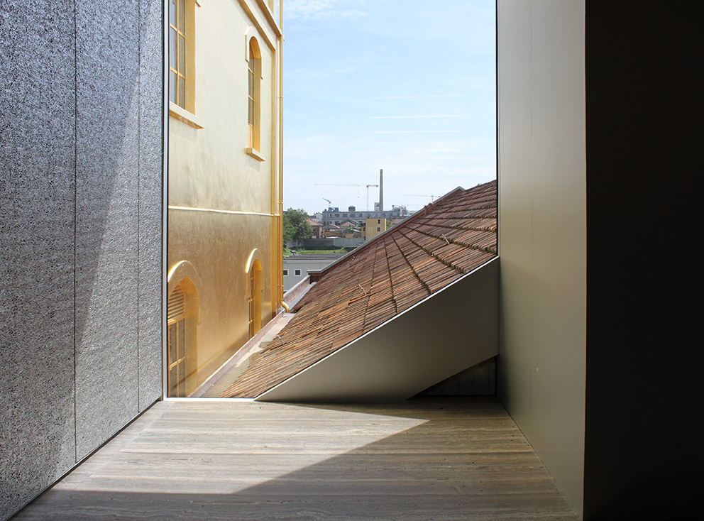 Und nicht nur die Außen-, auch die Innenräume bilden eine einzigartige Sammlung: Jeder Ausstellungsraum – wirklich jeder – unterscheidet sich von all den anderen. Dieses räumliche Repertoire verschafft der Fondazione Prada mit ihrer breit angelegten Kunstsammlung die Möglichkeit, tatsächlich jede Form von Kunst ausstellen zu können. Zugleich geleitet diese Anthologie aus Räumen den Besucher über das Gelände und überrascht ihn mit immer wieder anderen räumlichen Situationen – ganz wie eine Stadt: Pradapolis.