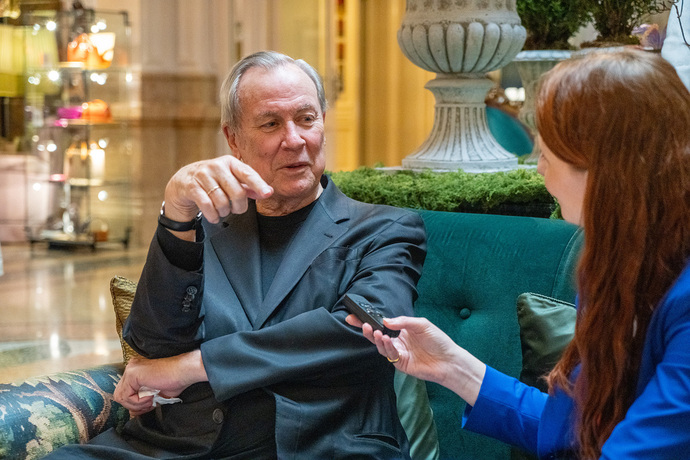 Robert Wilson: Das ist auch eine Frage der Balance. Wir müssen sie zulassen, das ist alles. Schauen Sie: Draußen vor dem Gebäude steht ein Baum, er hilft das Gebäude zu sehen und das Gebäude hilft den Baum zu sehen. Das Ganze ist eine Choreografie: Die Menschen, die auf dem Gehsteig laufen, der Autos, die auf der Straße fahren, dem starren Gebäude und den sanften Bewegungen der Blätter am Baum. Alles passiert gleichzeitig. Im klassischen griechischen Theater gibt es einen Protagonisten und einen Antagonisten sowie einen Chor. Im klassischen Ballett gibt es eine Primaballerina und ein Corps de ballet. Die Kunst besteht darin, diese natürliche Balance künstlich zu konstruieren. In der Musik kann man Szenen parallel in unterschiedlichen Tempos erzeugen. Jedes Gegenteil trifft auf sein Gegenteil. Man kann zudem von einem zum nächsten wechseln, das nennt man Thema und Variation. KomponistInnen, ChoreografInnen, ArchitektInnen nutzen das. Es ist eine Konstruktion, die sich in der letzten Sekunde noch ändern kann. Jede Entscheidung bewirkt eine Veränderung. Was kommt zuerst? Was kommt zuletzt? Ein Beispiel: Die Balletttänzerin Margot Fonteyn war 43 Jahre alt, als sie mit Rudolf Nureyev auftrat, der zu der Zeit 23 Jahre alt war. Das Publikum applaudierte stehend 30 Minuten nach ihrem Auftritt, aber sie sagte zu ihm, nochmal werde ich so nicht mit dir tanzen wollen. Warum? Er hatte die Balance nicht gehalten, ihr keinen Raum für kleine Pausen gegeben, die aber mit Blick auf den unterschiedlichen Energiehaushalt der beiden wichtig gewesen wären. Es geht um das Gesamtbild, die Zeit und den Raum gut zu nutzen. Zu wissen, was man erreichen möchte und was es dafür braucht. Versuchen Sie sich das vor Augen zu halten, wenn Sie im Theater sind. Es ist eine Gesamtkonstruktion aus Zeit und Raum.