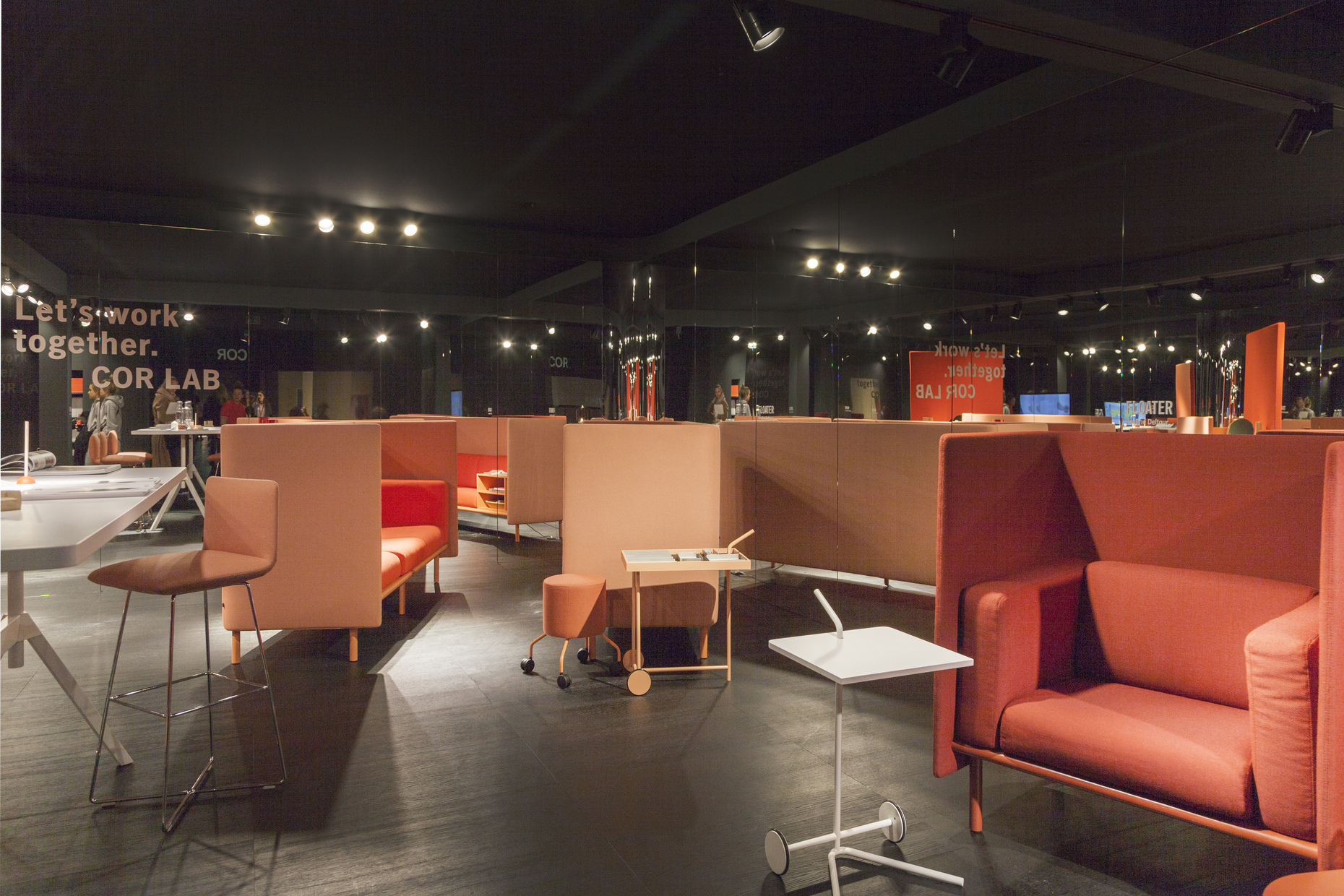 Einer der erfreulichsten Ereignisse der imm 2018 war die Präsentation der Entwürfe des sogenannten "Cor Labs", der neuen Linie des Traditionsmarke Cor. Mit einer Reihe neuer Produkte, die von den vier Designern und Designstudios RelvãoKellermann, Pauline Deltour, Uwe Fischer und Aust & Amelung entwickelt wurden, möchte der Polstermöbelspezialist am Trend zum wohnlichen Büro partizipieren. Die vorgestellten Möbel sind durch die Bank weg als gelungen zu bezeichnen und lassen auch sofort an eine Verwendung im Wohnbereich denken. Pauline Deltours Hocker und Pouf "Drop" etwa kann man sich problemlos gleichermaßen in öffentlichen Räumen wie im Wohnzimmer vorstellen. Auch ihr Sofa "Floater", dass in seiner hohen Polsterumfassung auch kleine Regalelemente aufnehmen kann, ist viel zu gut, um es nicht auch in Privaträumen zu verwenden. Das gilt in gleicher Weise ebenso für all die anderen Produkte der Kollektion.