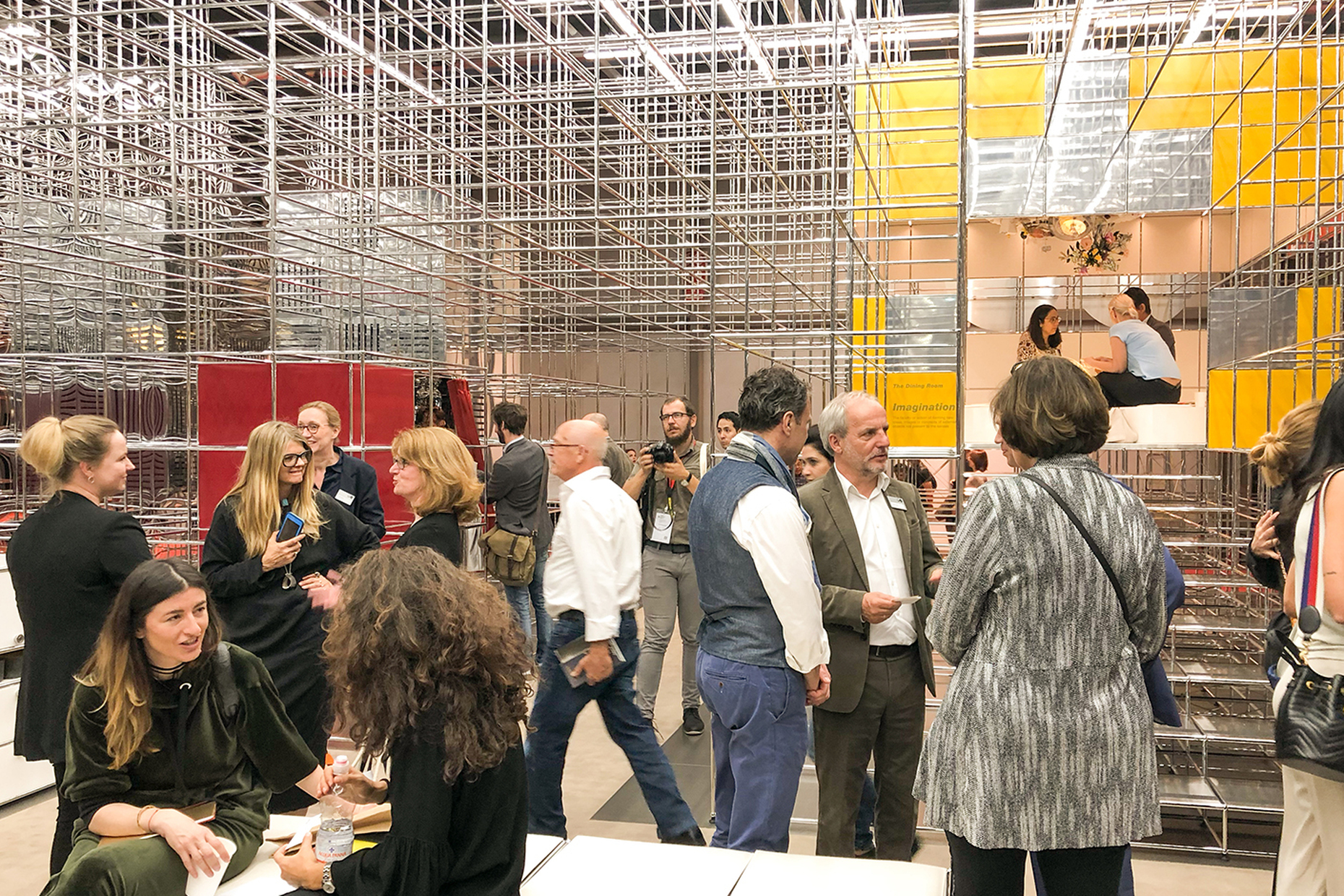 Diese Tendenz zeigte sich besonders augenfällig an einigen Standarchitekturen in den Messehallen. In der Halle 20 zeichneten zwei der bedeutendsten Architekturbüros der Gegenwart für die Stände von KnollInternational und USM verantwortlich. Die ephemeren Architekturen von OMA aus Rotterdam (Knoll) und UNStudio aus Amsterdam (USM) forderten zum direkten Vergleich geradezu heraus. Bemerkenswert: Beide Entwürfe versuchten den Brückenschlag zwischen der streng modernistisch-funktionalistischen Tradition beider Unternehmen und state-of-the-art-Warenpräsentation. Die Ergebnisse hätten dennoch unterschiedlicher kaum ausfallen können: UNStudio nutzte das ikonische USM Haller Modulbausystem, um daraus eine Standarchitektur zu schaffen, die durch die Vielzahl an chromglänzenden Verstrebungen geradezu Op-Art-ähnliche Effekte erzeugt. Sperriger präsentierte sich dagegen der OMA-Entwurf für Knoll, der der Architektur des New Bauhaus Referenz erwies – angefangen bei dem völlig offenen Grundriss über die kassettierte Decke bis hin zur Wandverkleidung aus Tropenholz. OMA zitierte diese in den 1950er und 1960er Jahren entworfenen Elemente als vorbildliche Lösungen – etwa Marcel Breuers Rasterdecke für das New Yorker Whitney Museum – und demonstrierte mit dem Stand ihre fortdauernde Gültigkeit. Die niederländischen Architekten paarten sie mit Paravents aus transparentem Well-PVC, die an eigene Arbeiten anknüpften.