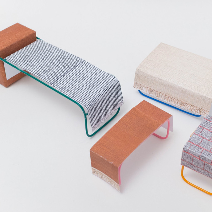 "Structures" vom Studio Greiling in Zusammenarbeit mit dem Kinnasand LAB thematisiert in einer farbenfrohen Installation den Teppich in einer ungewohnten Rolle – statt dem Besucher zu Füßen zu liegen, steht die haptische Erfahrung im Vordergrund.