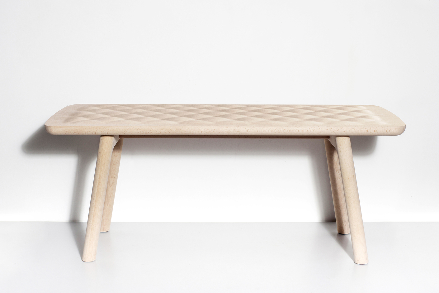 Festgehalten werden muss aber auch: Eine ganze Reihe von Nachwuchs-Designern verliert sich im Dekorativen und entwirft eine Art von "Hipsterdesign", das mit Pastellfarben, hellem Holz oder schwarzem Metall skandinavisch-brav daherkommt. Solche Dinge sind eben nur nett, wurden schon oft gesehen und sind am Ende zu beliebig. Auch Maciej Chmara und Ania Rosinke vertreten diese Richtung, ziehen ihre Sache aber so konsequent durch, dass man für die beiden aus Polen stammenden Designer doch mehr übrig hat als nur ein müdes Lächeln. Mittlerweile in Wien ansässig, entwerfen sie Schmuck, Wandobjekte, Stühle, Tische und Teppiche – eigentlich alles, aber stets auf der Grundlage eines markanten, sehr eigenen Spiels mit Geometrien. Man würde sich nicht wundern, wenn man ihre Entwürfe in angesagten Concept Läden wie Urban Outfitters oder &Other Stories wiederfinden würde, kann man sie doch durchaus als modisch bezeichnen. Nicht zufällig haben die beiden bereits mit der H&M-Tochtermarke COS kooperiert.