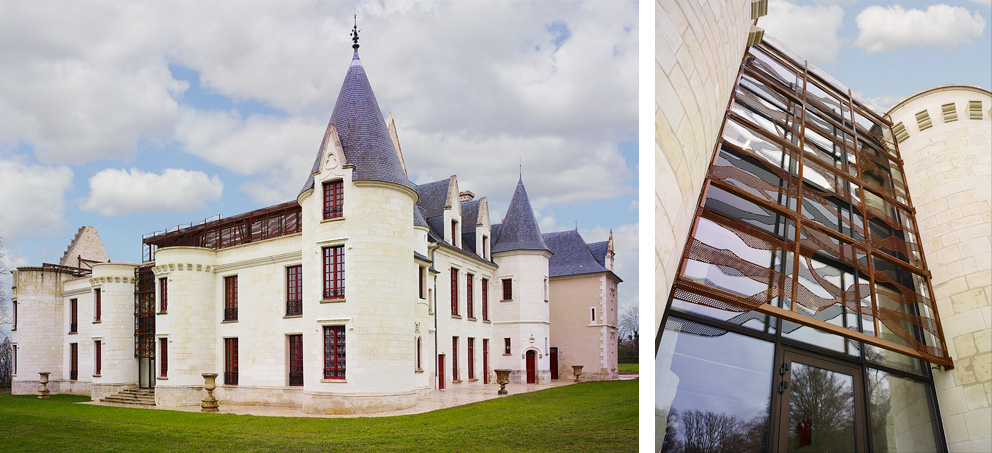 Links: Das Château de Cangé in der Nähe von Tours wurde behutsam erweitert und zur Bibliothek ausgebaut. Foto © RMIG