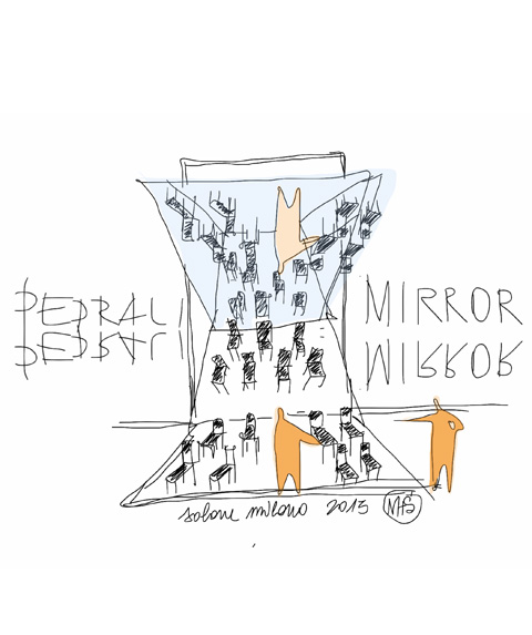 Außerdem setzt Pedrali die erfolgreiche Zusammenarbeit mit den Architekten Migliore+Servetto fort, die auf dem Salone 2012 Stühle von Pedrali in riesengroße Räder aufstellten. In diesem Jahr dürfen wir auf die Umsetzung mit dem Namen „Pedrali mirror” gespannt sein.