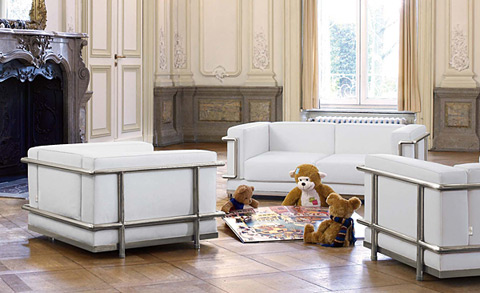 Nachdem der Markt der Großen gesättigt ist, sind jetzt die Kleinen dran. Jacobsens Ameise und Pantons Stuhl gibt es längst auch für Kinder, nun setzt Living Jewels mit seinen Möbelstücken der Serie_01 die Reihe fort. Sessel, Zweisitzer und Daybed der Serie_01 sind speziell den Bedürfnissen der Kleinen angepasst, Maße und Proportionen sind auf Kinder zwischen drei und zehn Jahren abgestimmt. Durch einen niedrigen Schwerpunkt, eine große Aufstandsfläche und ein relativ hohes Eigengewicht der Sessel wiegt etwa 31 Kilogramm - kippen die Möbel nur schwer um. Die Ecken und Enden des Gestells sind abgerundet und nahtlos verschweißt, der hochglanzpolierte Edelstahl löst keine Allergien aus. Für den Bezug im Innenraum stehen zwei strapazierfähige Materialien zur Wahl: Rindsnappaleder oder ein Stoffbezug aus Super-Mikrofaser. Der Lederbezug hat eine natürliche Narbenprägung und wird traditionell mit Mineralien gegerbt und mit Naturfarben eingefärbt. Die Stoffbezüge sind glatt und robust.Für den Einsatz der Möbel im Außenbereich gibt es ebenfalls zwei Bezugsvarianten: ein hochwertiges Kunstleder oder ein wasserdichter, innen beschichteter Textilbezug.