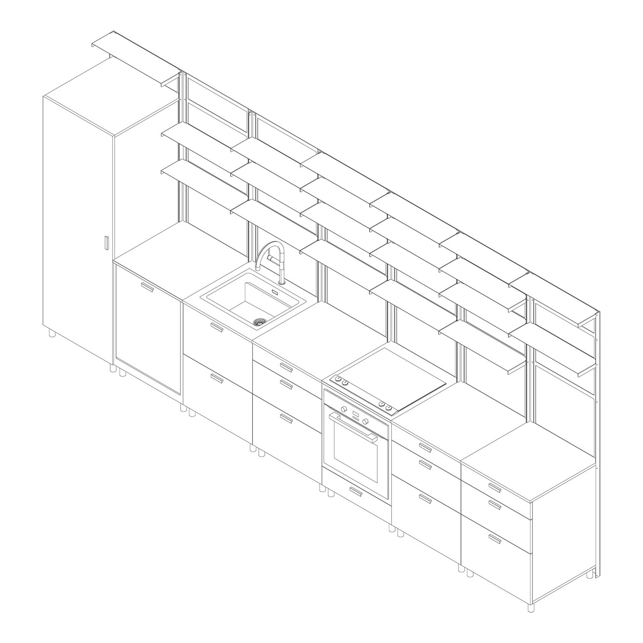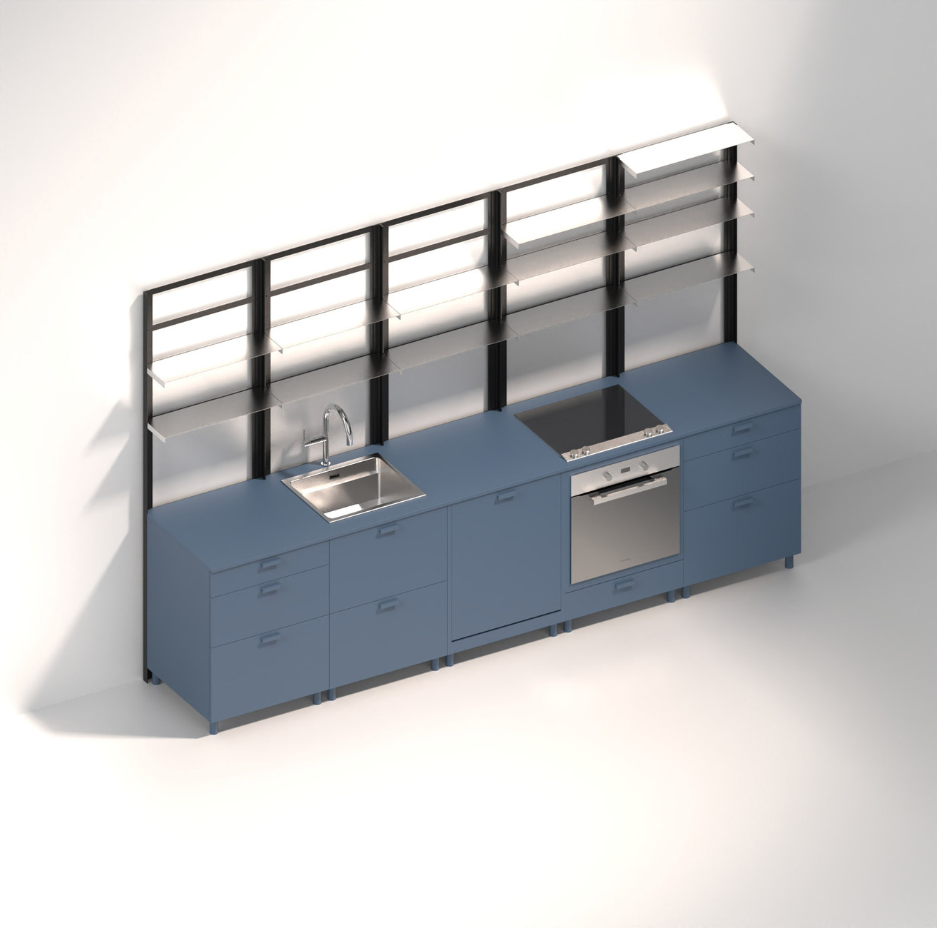 "POSSI" heißt die modulare Küche von Tanita Klein, die als Zentrum im Raum immer wieder neu arrangiert werden kann – ganz nach den individuellen Rahmenbedingungen. Die Inspiration für das flexible System fand die Designerin in ihrer Heimatstadt Frankfurt, genauer gesagt in der "Frankfurter Küche". Erdacht wurde der Archetyp der modernen Einbauküche einst Mitte der 1920er-Jahre von der Architektin Margarete Schütte-Lihotzky als Teil des Stadtentwicklungsprojekts Neues Frankfurt, das von Ernst May initiiert wurde.