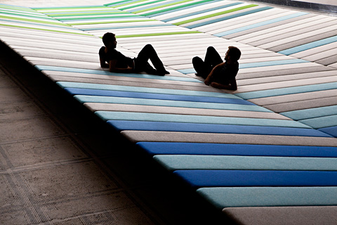 So inszenierten auch in diesem Jahr die Organisatoren des Festivals Vorträge, Debatten und Installationen im Victoria & Albert Museum in Kensington. Zu sehen war unter anderem „Textile Field", eine von Erwan und Ronan Bouroullec in Zusammenarbeit mit dem dänischen Stoffhersteller Kvadrat entworfene, dreissig mal acht Meter grosse Teppichlandschaft inmitten der Raphael Galerie. An der Royal Festival Hall in South Bank wiederum wurde im Rahmen von „Size & Matter" ein temporärer Glaspavillon präsentiert, der dieses Jahr von David Chipperfield gestaltetet worden ist. Und auch Christopher Wrens St Paul's Cathedral öffnete ihr südwestliches, turmartiges Treppenhaus mit einer Installation von John Pawson in Zusammenarbeit mit Swarovski: Inmitten des Raumes stand eine grossformatige Kristalllinse auf einem verspiegelten, halbkugelförmigen Sockel, die dank einer zweiten, an der Decke angebrachten Linse den spiralförmigen Treppenaufgang ins Unendliche spiegelte.