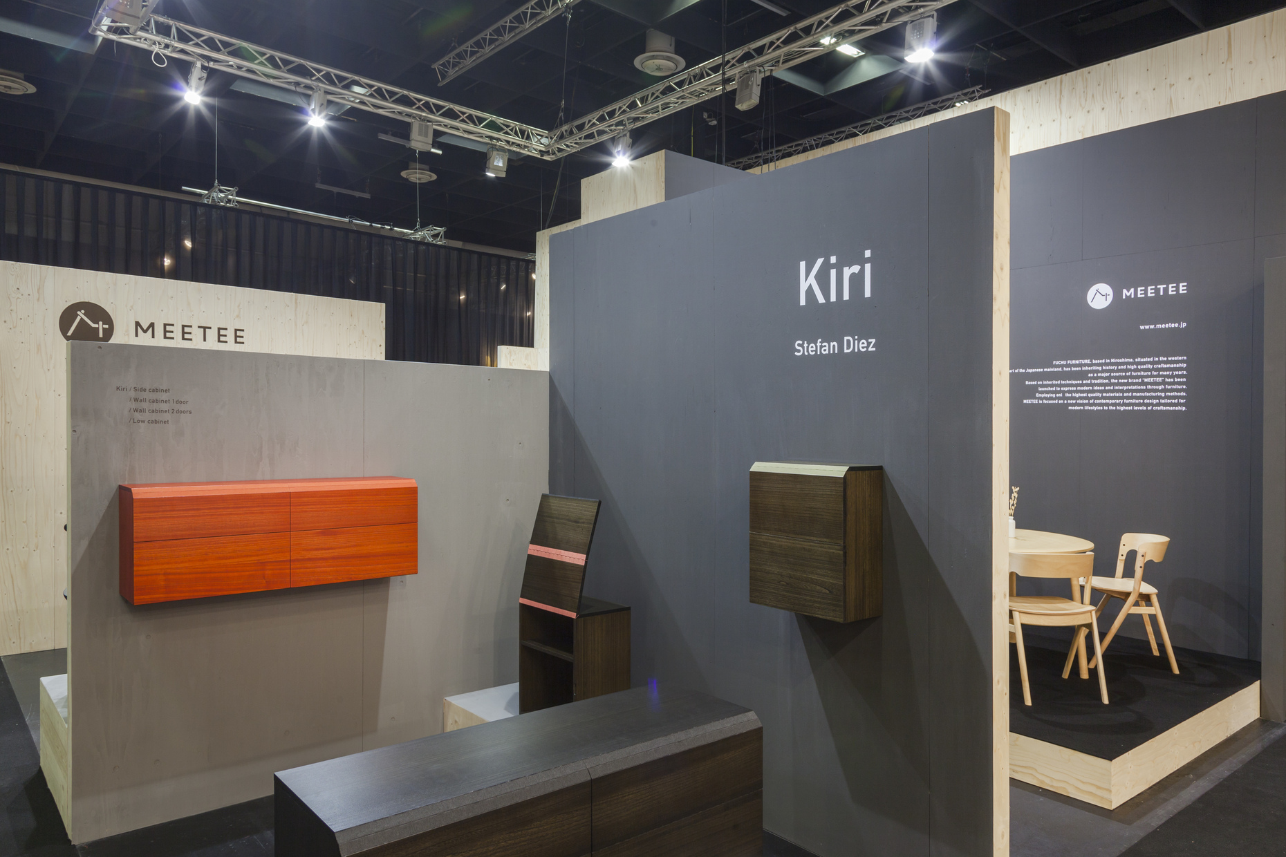 Das aus Leichtholz gefertigte Regalsystem "Kiri", das Stafan Diez für den japanischen Hersteller Meetee entwickelt hat, wird mit Falt-Klapptüren nahtlos verschlossen.