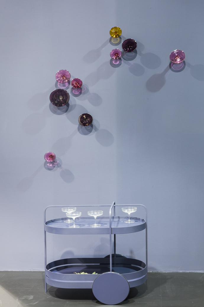 Mit seinem ganz aus geometrischen Formen entwickelten Barwagen knüpft Sebastian Herkner an Vorläufer wie den Servierwagen von Alvar Aalto an.