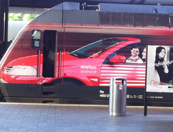 Autoreisezüge gibt es schon lange. Doch so gleichauf und direkt miteinander verbunden wie Automobil und Lokomotive sich hier in der Schweiz präsentieren, funktioniert die Vernetzung der Verkehrssysteme Auto und Bahn im Alltag leider noch nicht. Symbolisch aber steckt in jedem Zug schon ein Stück individuelle Mobilität. (tw)