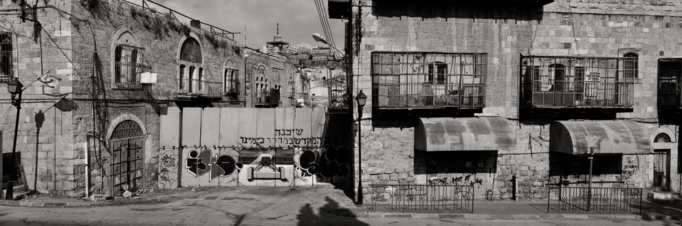 Alle nur erdenklichen Annäherungen, alle möglichen „Einstellungen“ hat der Fotograf im Panoramaformat durchdekliniert. Ein Kranz nach innen gekrümmter Fertigbauteile, mit der eine Tunneleinfahrt vor Anschlägen geschützt werden soll, ist aus der Vogelperspektive zu sehen: Der Betonwall gerät zur „land art“ – als sei eine Skulptur von Tony Cragg in die karge Landschaft gestürzt. Der zugemauerten Straßeneinmündung in Hebron nähert Koudelka sich in Frontalansicht, bringt dadurch auch die benachbarten Häuser mit geschlossenen Ladentüren und heruntergelassenen Rollläden ins Bild. Das ist im Wortsinne „umfassend“ dokumentiert – hinterlässt aber einen ganz zwiespältigen Eindruck: Schwer zu entscheiden, ob hier lähmende Stille herrscht oder doch nur die für viele arabische Städte typische Feiertagsruhe.