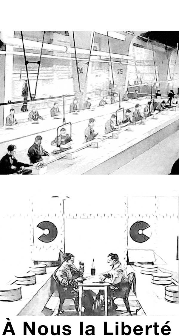Ausschnitte aus René Clairs Film „À Nous la Liberté“ (1931), Illustration © Sabrina Spee, Stylepark