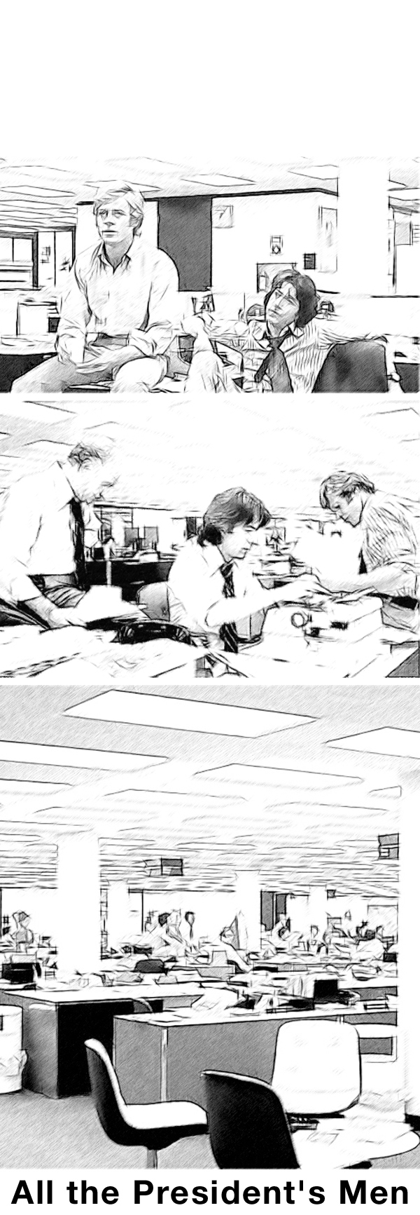 Ausschnitte aus Alan J. Pakulas Film „All the President’s Men“ (deutscher Titel „Die Unbestechlichen“, 1976), Illustration © Sabrina Spee, Stylepark