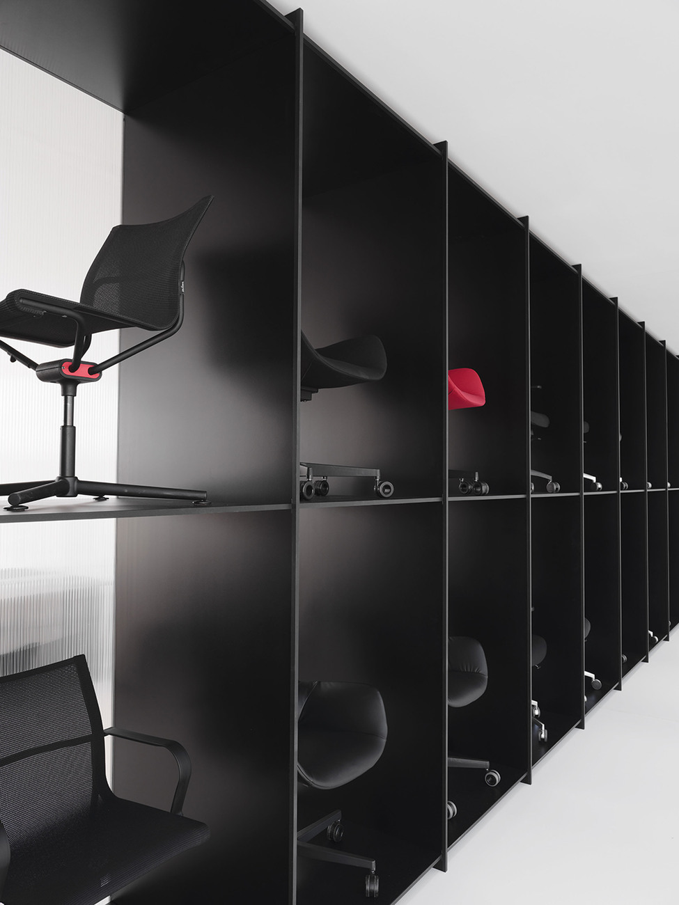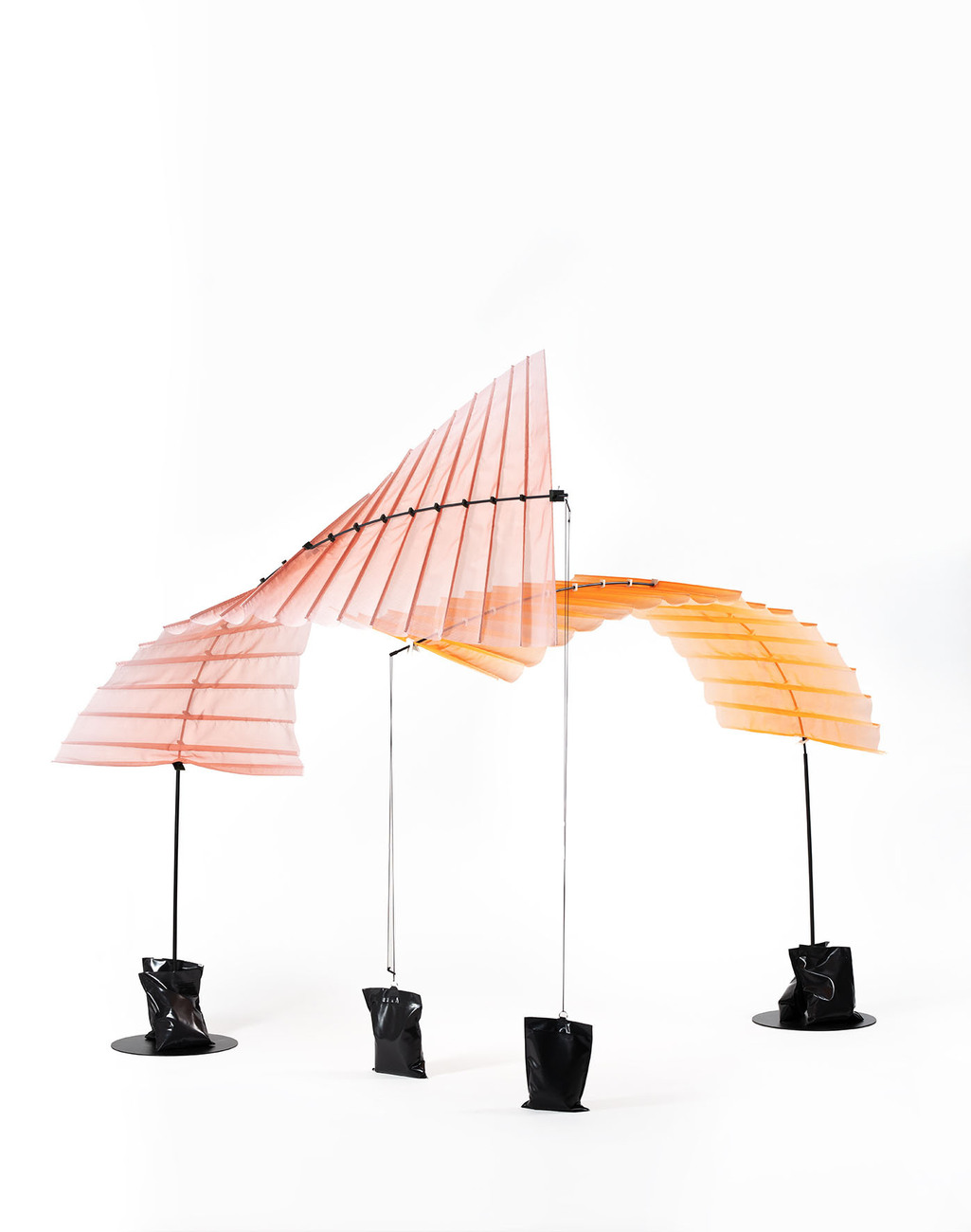 "Im Mittelpunkt der Aufmerksamkeit von 'Workspace in Progress' steht das Verhältnis einer jungen Generation zum Thema Arbeit. Die Entwürfe thematisieren die aktuellen Bedingungen der Arbeitsumwelt, wie Kreativität, Anpassungsfähigkeit und Flexibilität, und die damit verbundenen technologischen, ökonomischen und sozialen Herausforderungen", so die Kuratorin Matylda Krzykowski. Zusammen mit Wagner, Prof. Stefan Diez, den Studierenden der Klasse Industriedesign der Universität für angewandte Kunst Wien, Lina Fischer (Diez Office), dem Filmemacher Daniel van Hauten sowie Mirko Borsche vom Bureau Borsche hat sie eine hybride Schau auf die Beine gestellt, die als Status Quo und Blick in die Zukunft des New Work gelesen werden kann. Die StudentInnen von Stefan Diez haben im Rahmen des Projekts vielfältige Möbel, Systeme, Mode, Leuchten und Geräte entwickelt: Laura Dominici schafft beispielsweise mit "Magic Tapestry" einen flexiblen Arbeitsplatz, der Schreibtisch und Teppich miteinander verbindet und parallel als Wandobjekt dient. Steven Dahlinger zeigt mit "Nesting" ein Sofa, dessen Kopfteil sich zu einer schützenden Struktur formen lässt und Alice Klarwein hat mit "Performing Stages" eine modulare Struktur entworfen, die als flexibler Arbeitsplatz wie als Regal fungiert.