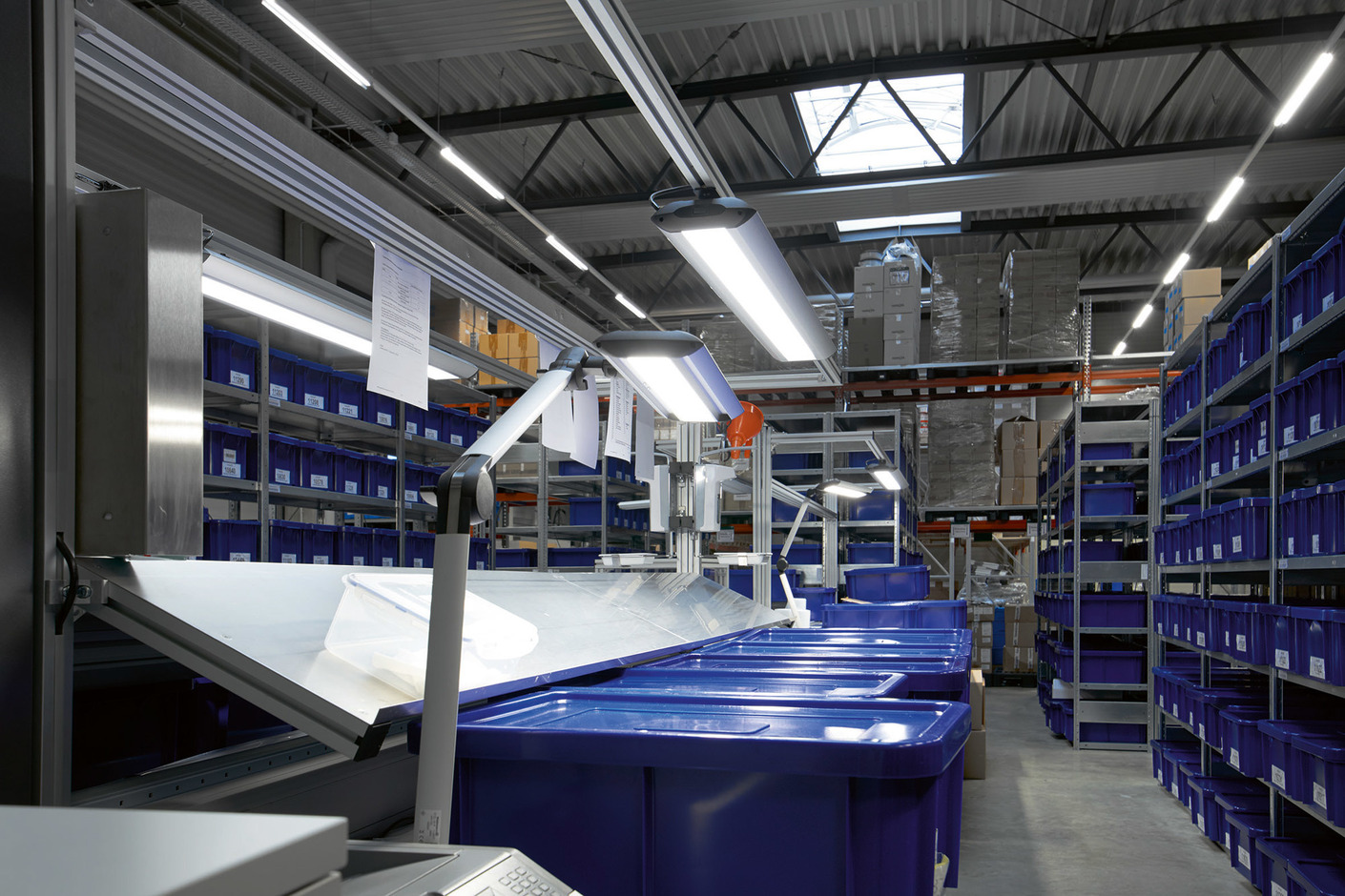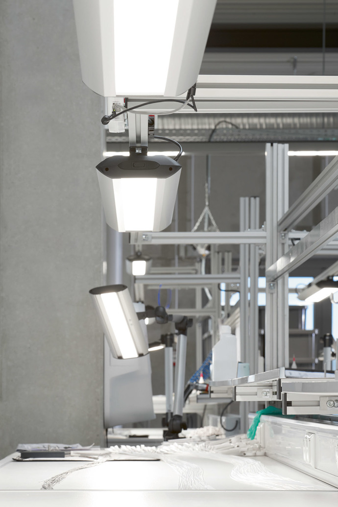 Bei Medwork gibt es zahlreiche Arbeitsplätze, an denen teils unter Reinraumbedingungen medizinischen Hightech-Instrumente hergestellt und verpackt werden. Diese Tätigkeiten, die höchste Anforderungen an das menschliche Auge stellen, verlangen eine ideale Lichtstärke. Deshalb kommt hier eine zwei Zwei-Komponenten-Beleuchtung zum Einsatz. Neben Systemleuchten vom Typ "TAMETO" finden Gestängeleuchten der Reihe "TANEO" Verwendung, sodass an jedem Arbeitsplatz bis zu 1000 Lux zur Verfügung stehen. Die Lichtmenge kann dabei individuell reguliert werden, so dass sie jeder Beschäftigte gemäß dem persönlichen Bedürfnis einstellen kann. (fap)