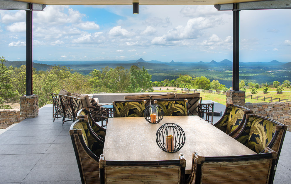 Frühstücken mit den Glass House Mountains. Von der Terrasse aus haben die Bewohner einen herrlichen Blick auf die Berge.