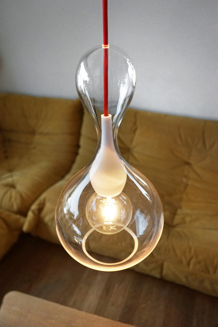 Ein auf's Wasser auftreffender Tropfen, die im Bruchteil einer Sekunde entstehnde Form eingefroren in Glas: Das ist BLUBB, die neue Leuchtenfamilie aus der Feder von Constantin Wortmann. Als Pendel- und Tischleuchte in klarem Glas offenbart die Leuchte ihr inneres Geheimnis: BLUBB_mini. Ein kleiner BLUBB aus opalem Glas umhüllt die Fassung uns ist solo so formschön, dass es in schwarz und opal auch als Einzelleuchte gibt. Die Pendelleuchte und Tischleuchte BLUBB ist erhältlich in mehren Farben und mit einem farbigen Textilkabel ausgestattet. Die Leuchtenfamilie ist immer mit einer E 27 Fassung ausgestattet, die mit einem LED-Leuchtmittel, ob opal oder klar, je noch gewünschter Wirkung, bestückt werden kann. Alle BLUBB Pendelleuchten sind selbstverständlich mit dem patentierten Plux-Baldachin ausgestattet.