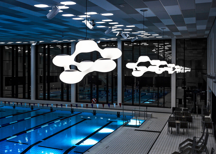 Die Leuchte "Cosmo" von next lighting lockert die Lobby eines Zentrums für Plasmapherese in Ungarn auf.