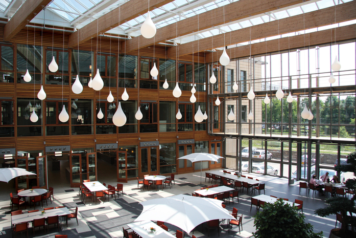 Die Leuchte "Cosmo" von next lighting lockert die Lobby eines Zentrums für Plasmapherese in Ungarn auf.