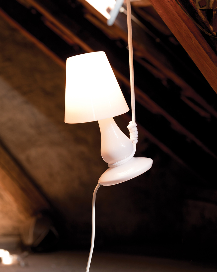 FlapFlap°10 hebt spielerisch die Gesetze der Schwerkraft auf. Die Leuchte schwebt im Raum. Das unsichtbar verstärkte Kabel erhebt sich wie von Geisterhand. Bereits 2000 wurde die erste Version FlapFlap von Hopf&Wortmann gestaltet und von next home collection produziert. Zum 10jährigen next-Jubiläum in 2010 hat Constantin Wortmann das Redesign FlapFlap°10 konzipiert. Der Look: Eine brilliante, funkelnde FlapFlap°10. Den Zeichen der Zeit entsprechend wird die Leuchte mit einem LED-Leuchtmittel angeboten.