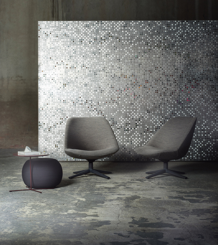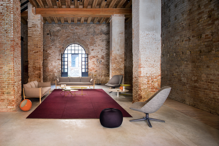 A new swiveling and tilting armchair is added to the chair introduced in 2017. Its essential, modern and yet classic design is ideal for both residential and contract projects. The base is made of steel and wood, this last finished by hand in Mano Opaca, a transparent oil-based varnishing, which let the wood’s natural veins show through. The structure is made of molded plastic material with a padding in polyurethane and polyester fiber. The upholstery cover is fixed and available in Paola Lenti’s signature indoor fabrics.