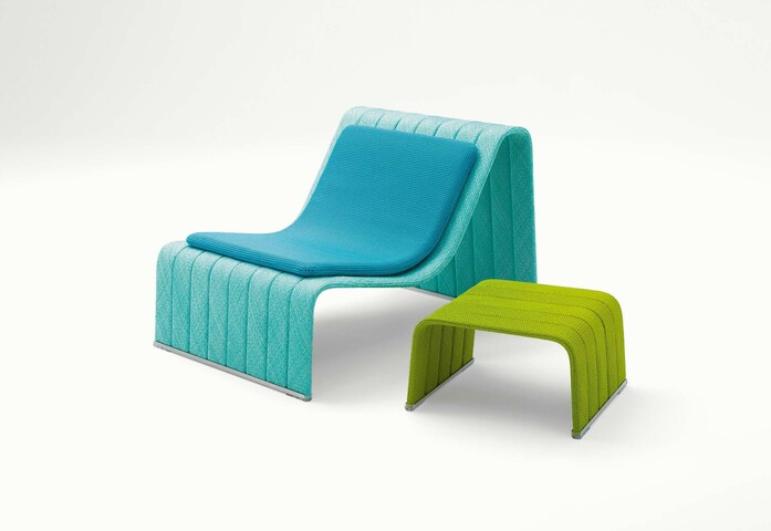 Series composed of modular sofas, platforms, armchairs, chairs, benches and side tables made with aluminum profiles covered with a Twiggy, Rope or Aquatech braid, exclusive yarns designed and produced by Paola Lenti for the outdoor use. Depending on the kind of yarn used, the braid can be in solid colours, two-colours or multi-colours. Frame seating are completed with mattresses and additional cushions covered in the exclusive outdoor fabrics of the Paola Lenti collection.