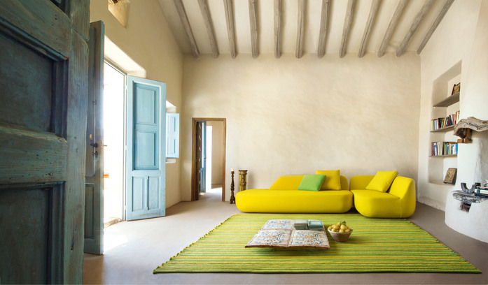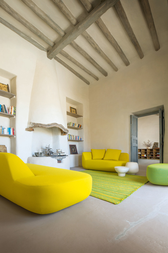 Uptown is a series composed of left and right, linear or shaped sectional elements, chaise longue and pouf. The steel structure is padded with cold injected polyurethane; the removable upholstery cover is available in the fabrics Blend, Dots or the new Piqué, all indoor Paola Lenti’s signature fabrics.