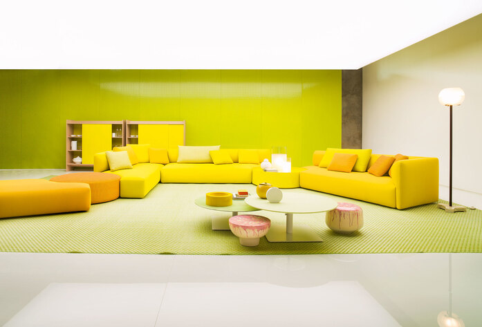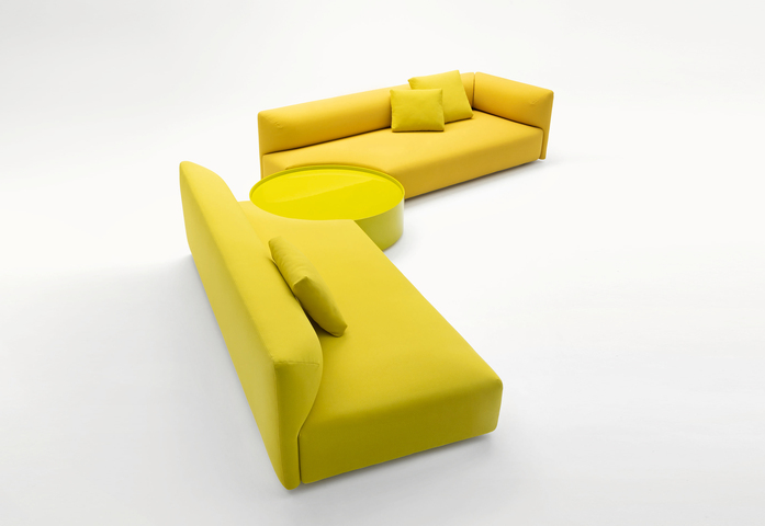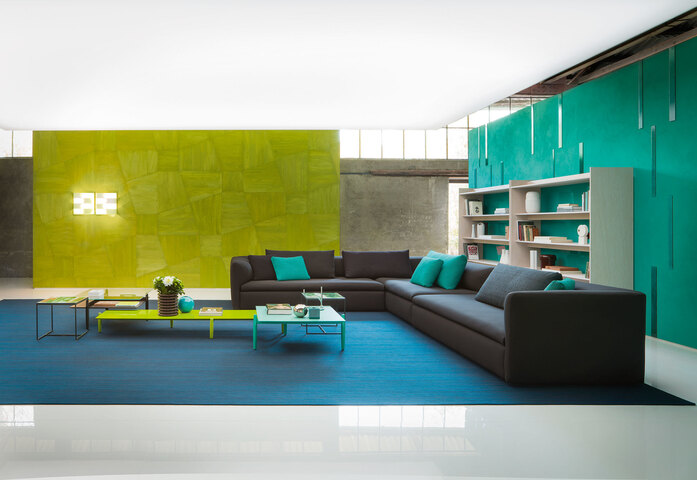 Series composed of a three-seater sofa and linear or shaped sectional elements, with or without removable seat cushion. The elements Walt are available in different dimensions and can be used to create compositions, which may include large poufs and wooden side tables finished Mano Opaca or Mano Lucida. The structure is padded with stress resistant expanded polyurethane; the upholstery cover is removable and available in Paola Lenti’s signature indoor fabrics.