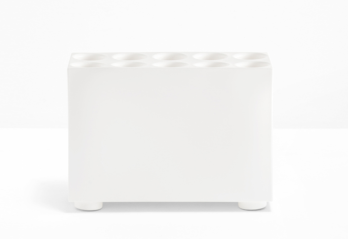 Brik ist ein farbenfroher und verspielter Schirmständer mit einem Volumen aus Polyethylen und einer kratzfesten, matten Oberfläche, hergestellt durch Rotationsdruck. Er hat 10 Löcher in denen bis zu 20 Schirme Platz haben. Praktische für Regentage und ein Einrichtungsgegenstand für alle Tage des Jahres. Stapelbar.