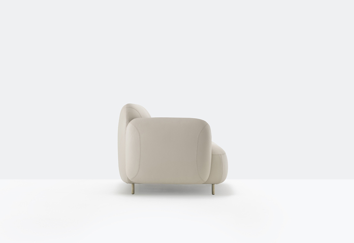 Das Zwei-Sitzer-Sofa bleibt im Einklang mit dem freundlichen und beruhigenden Design der Kollektion, sein Sitzkomfort wird durch die vier verschiedenen Dichten des verwendeten Polyurethanschaum und den elastischen Gurten in der Sitzfläche maximiert und man sitzt sanft darauf und fühlt sich geborgen. Das Sofa ist äußerst vielseitig: erhältlich mit oder ohne Armlehnen können mehrere Sitzmodule nebeneinander aufgestellt werden. Version mit abnehmbarem Bezug auf Anfrage.