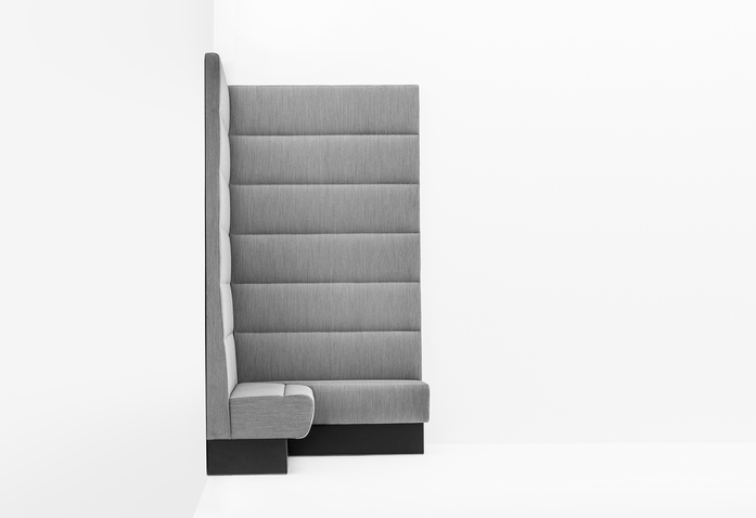 Modus Ecke mit 90 Grad, erlaubt die Gestaltung verschiedener Sitzkombinationen. Die Rücklehne ist in den verschiedenen Varianten und Höhen (110,175 und 240 cm) zu erhalten.