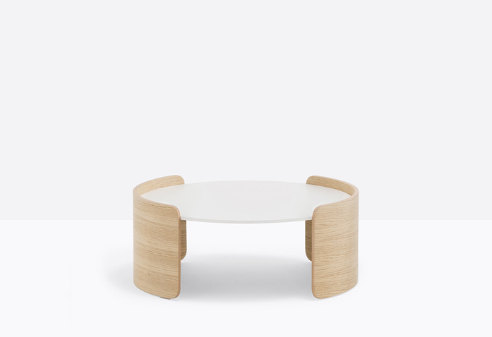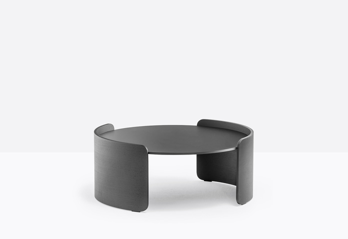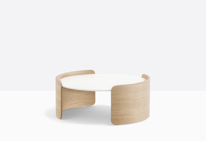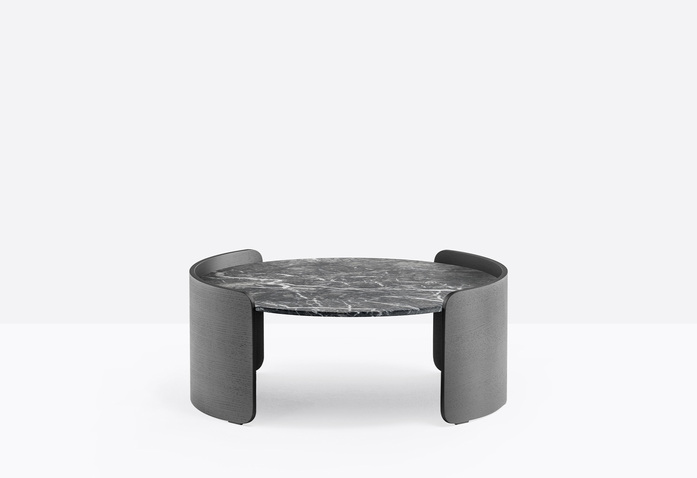 Parenthesis ist ein vielseitiges Möbelstück das sich für verschiedene Kontexte und Nutzungslösungen eignet. Beistelltisch bestehend aus zwei runden Konsolen aus Multiplex mit Eichenfurnier kombiniert mit einer Tischplatte aus Sperrholz oder Marmor. Ø730 mm.