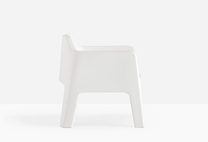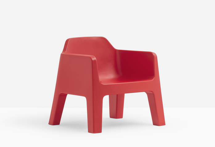 Die Plus Kollektion, sowohl für den Außen- als auch Innenbereich gedacht, ist in der Lage, großzügiges Volumen und formale Eleganz in perfekter Balance zwischen Komfort und Funktionalität zu vereinen. Lounge-Stuhl aus spritzgegossenem Polypropylen. Kissen für den Outdoor-Bereich verfügbar.