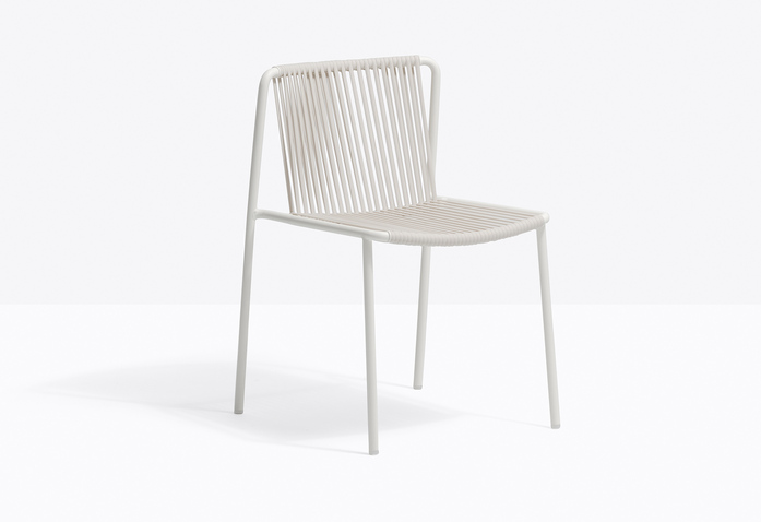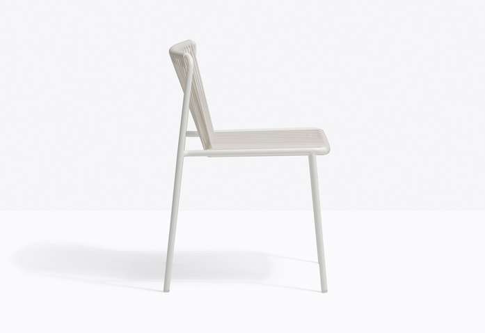 Tribeca entstand aus der Erinnerung mit Ihren beruhigenden Echos, einer modernen Neuinterpretation der klassischen Sixties-Terrassenstühle aus geflochtenem Stahl. Stuhl mit Gestell aus Rohr, Ø20mm, lackiert für den Außenbereich, Rückenlehne und Sitz mit vertikaler Bespannung aus extrudiertem PVC mit Nylonkern. Speziell für den Einsatz im Freien entwickelt. Stapelbar.