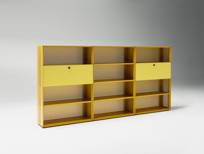 Werner Aisslinger hat für den Systemmöbelhersteller Piure das Regalsystem "Mesh" entworfen, das Funktionalität mit Wohnlichkeit verbindet.