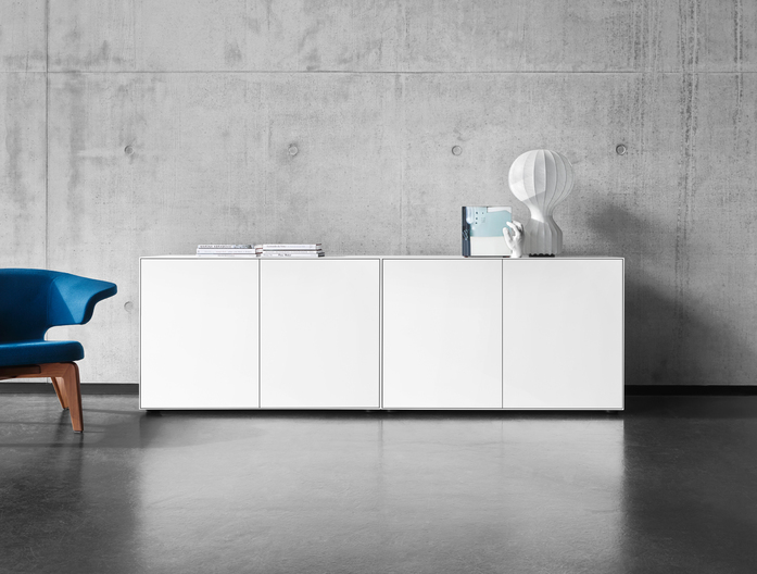 NEX PUR BOX Finessenreich im Detail, auf Gehrung gearbeitet, mit feinen Schattenfugen und sehr variabel – die Nex Pur Boxen können Sie vielfältig zusammenstellen, da es die Boxen in 20 Varianten gibt. Die Türen-, Schubkästen- und Klappenboxen stehen Ihnen in den Höhen 37,5, 50 und 75 cm sowie in den Breiten von 60 und 120 cm zur Auswahl. Step-Boxen mit farbigen Aufsätzen in Breite 120 cm und die Medienbox in H 37,5 cm und Breite 120 cm runden die Selektion ab. Immer in weiß, 48 cm tief, auf Gleit- oder Eckfüßen und makellos verarbeitet.
