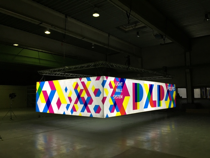 Die textile Oberfläche wird auf den Rahmen gespannt und kann individuell bedruckt und ausgetauscht werden. Sie wird von den LED-Modulen hinterleuchtet.