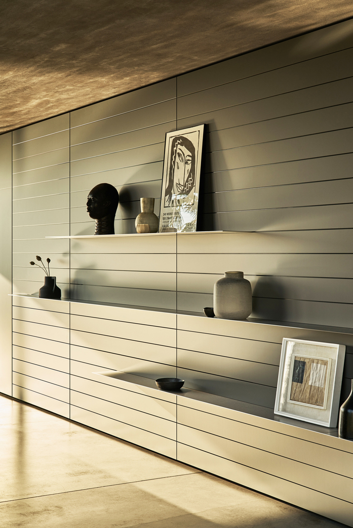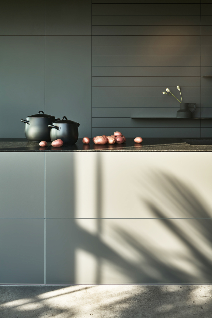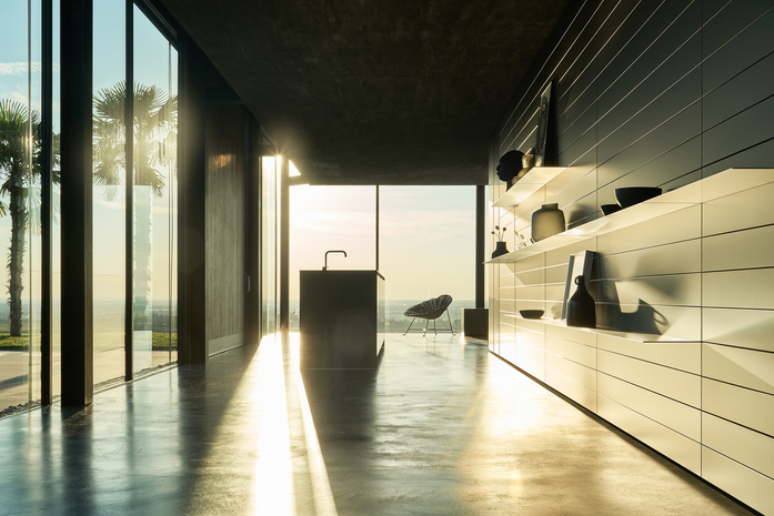 Eine Küche, die mit ihrer schlichten, aber effektvollen Linienführung Puristen begeistert. Die grifflosen Flächen machen aus dem Korpus eine Skulptur und lassen ihn wie gegossen wirken. Die horizontalen und vertikalen Linien segmentieren die frei gestaltbare Rückwand und geben Funktion und Struktur. Eine zeitlose Komposition aus Stil und Stille.