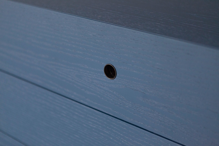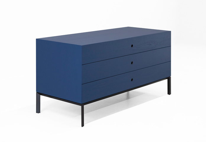 Craftsmanship is not forgotten by the Offshore series of containers by Piero Lissoni with floating colors, evoking abstract painting and unleashing the vintage flavor of oriental furniture. Made of ash wood with 45° shelves, the result of a careful manufacturing process, these sideboards are distinguished by their doughy finish obtained through repeated manual steps thanks to which the grain, first darkened with black tones, surfaces in fascinating colors from red to blue. The opening mechanism is also unusual, thanks to an inset handle, an entirely metal-plated hole which rediscovers tactile sensations.