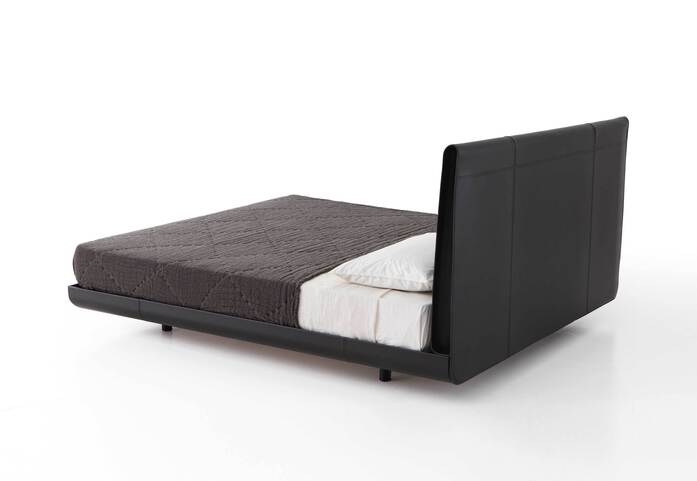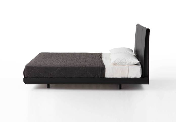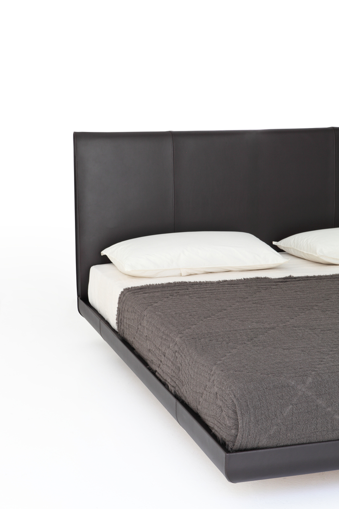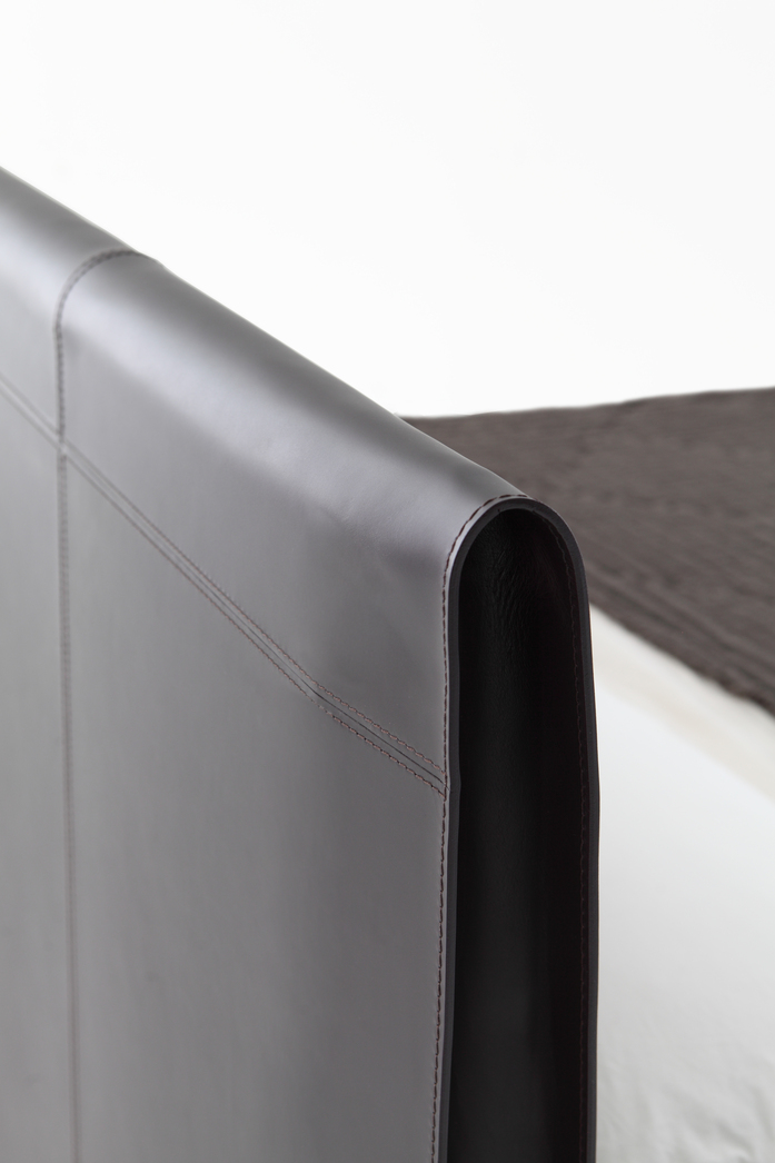 An intimate size and a complete hide cover characterise the new Sadoru bed by Oscar and Gabriele Buratti brothers, two of the company’s favourites for their measured style and their eye for detail. Tall and solid, with its strong yet not excessively deep headboard, Sadoru easily fits all home and contract environments, where the eye is captivated by the chosen material. The thickness, the double seam and the refined detail of the large, curved headboard, that folds in on itself like an envelope on the sides, reveal a creative, ingenious project and an almost hand-crafted saddlery-like production.