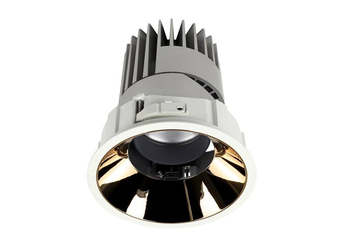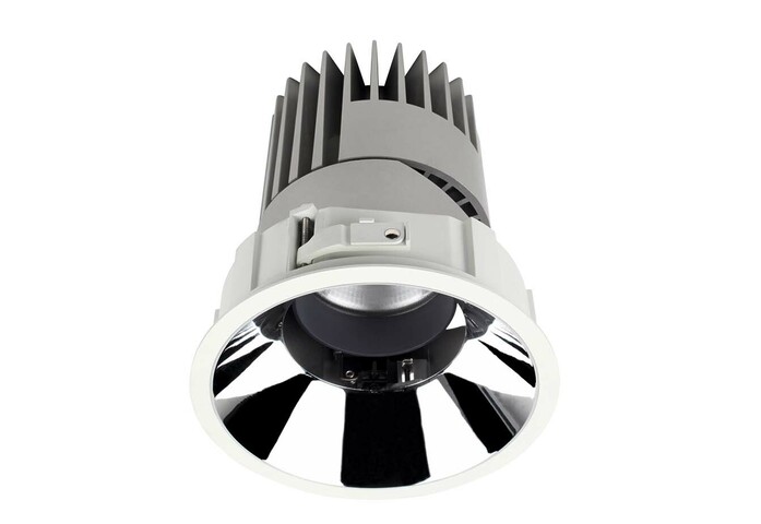 Die wählbaren Größen reichen von PERFORMANCE XXS mit einem Durchmesser von 55mm und einer Einbautiefe von 61mm bis PERFORMANCE L mit einem Durchmesser von 159mm und einer Einbautiefe von 190mm. Dabei sind alle PERFORMANCE Downlights für eine Deckenstärke von 11mm bis 25mm geeignet und nach Bedarf flexibel anpassbar. Für optimal gerichtetes Licht sorgt der Reflektor mit einer Drehbarkeit von 359° und einer Schwenkbarkeit von 30°.