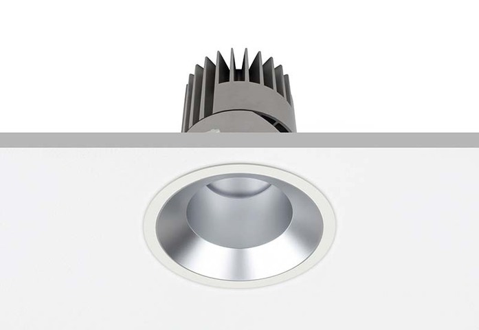 Die wählbaren Größen reichen von PERFORMANCE XXS mit einem Durchmesser von 55mm und einer Einbautiefe von 61mm bis PERFORMANCE L mit einem Durchmesser von 159mm und einer Einbautiefe von 190mm. Dabei sind alle PERFORMANCE Downlights für eine Deckenstärke von 11mm bis 25mm geeignet und nach Bedarf flexibel anpassbar. Für optimal gerichtetes Licht sorgt der Reflektor mit einer Drehbarkeit von 359° und einer Schwenkbarkeit von 30°.