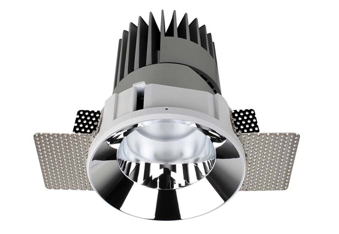 Die wählbaren Größen reichen von PERFORMANCE XXS mit einem Durchmesser von 55mm und einer Einbautiefe von 61mm bis PERFORMANCE L mit einem Durchmesser von 159mm und einer Einbautiefe von 190mm. Dabei sind alle PERFORMANCE Downlights für eine Deckenstärke von 11mm bis 25mm geeignet und nach Bedarf flexibel anpassbar. Für optimal gerichtetes Licht sorgt der Reflektor mit einer Drehbarkeit von 359° und einer Schwenkbarkeit von 30°.