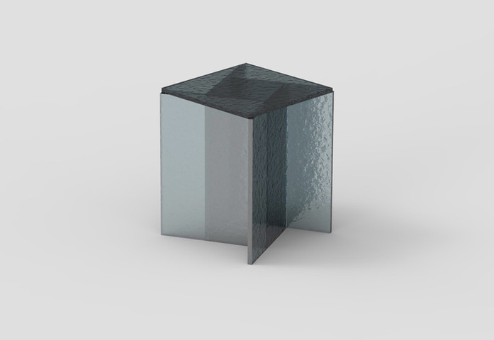 The series is an exercise in simple geometry – aspa translates to the intersection of straight planes. Each table brings together five glass panels converging at their centre. As each straight line is brought in, the coloured transparency of the glass form darkens to produce a layered aesthetic to the series. This layered form is highlighted through a combination of smooth glass surfaces backing onto rippled and textured chapel glass panels. Each panel altering reflections and transparencies to create a mesmerising centre-piece.